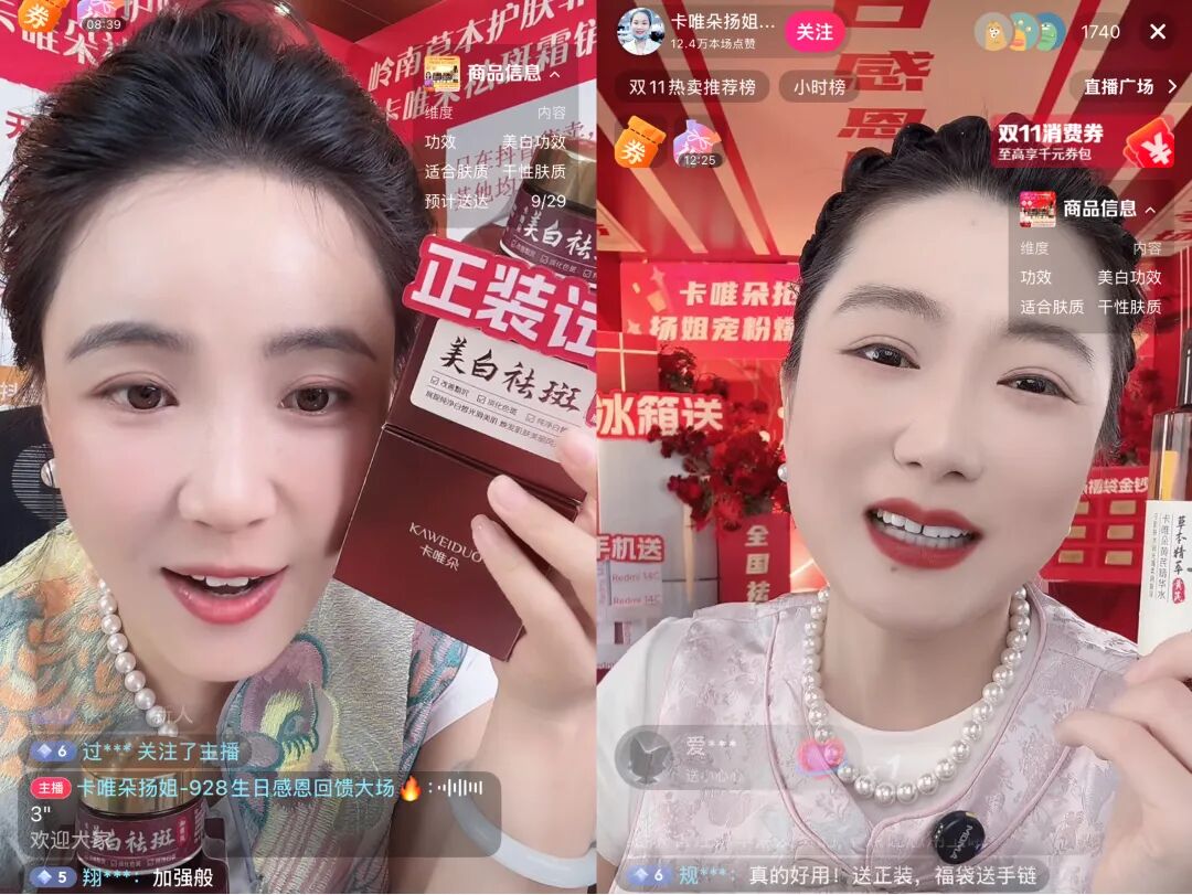 从电商打法上,卡唯朵多少有些“厦门帮”的姿态,凭借高投流获取新客,再通过直播间引导下单。但稍微有些不同的是,卡唯朵几乎没有达人营销,而是在抖音建立了多个矩阵账号,借由创始人程扬的影响力完成转化。而在目标人群定位上,卡唯朵瞄准的也是有淡斑需求的中年及老年用户——这一赛道虽然窄,但流量十分惊人,显示出这一美妆市场依然存在着很多“富矿”。