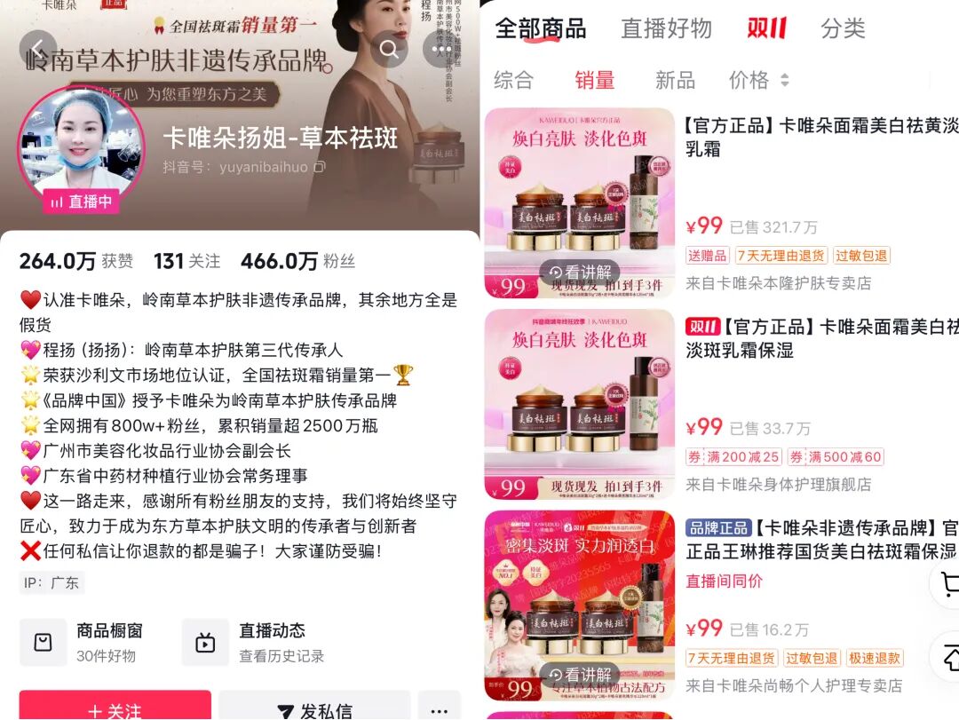 (图源:抖音账号@卡唯朵扬姐-草本祛斑)