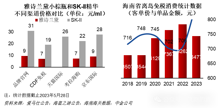 消费者关注免税店的核心是价格,雅诗兰黛、SK-II 等旗舰产品在海南 CDF 渠道价格全渠道最低。