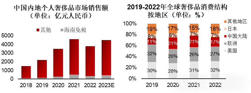 免税行业的上游核心供货商,是国外奢侈品品牌。2023 年中国内地奢侈品市场销售额预计增长 12%,海南免税的规模正快速回暖。