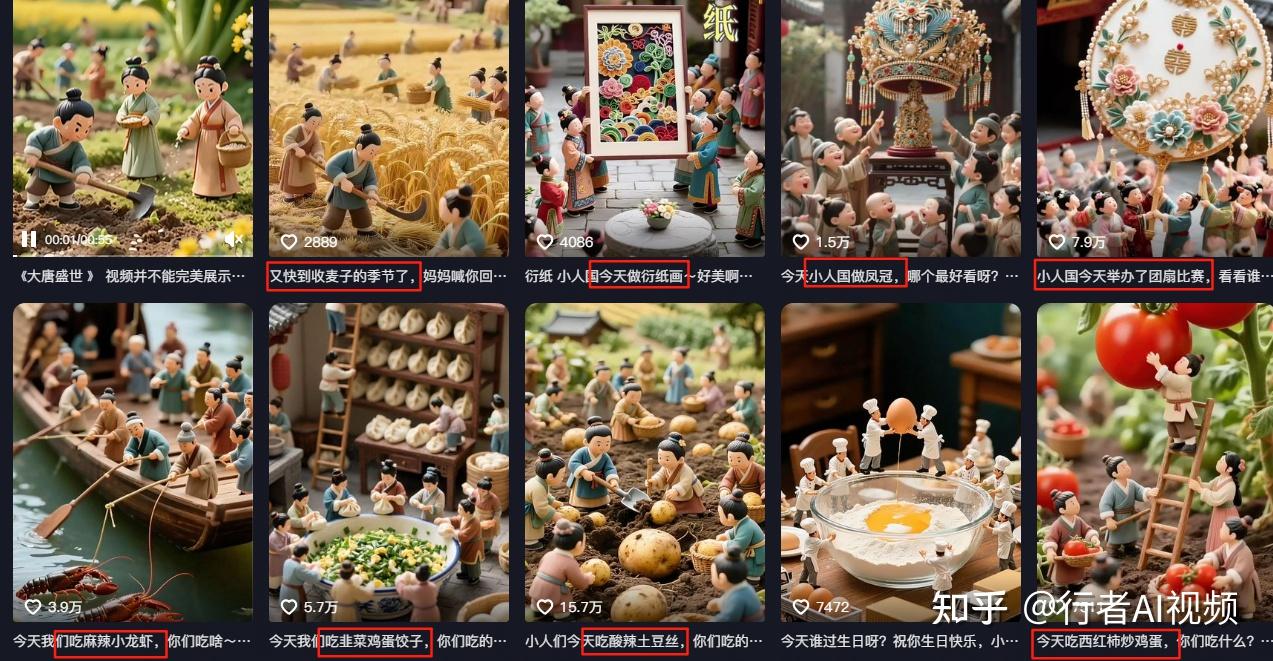 强视觉反差与萌系设定:"小人国" 这一奇幻设定本身具备天然吸引力,通过微观视角构建童话世界,与现实形成强烈反差;视频中将传统元素童趣化,结合动画形式放大可爱感,符合用户对 "治愈系"" 可爱到爆炸 " 的心理预期。