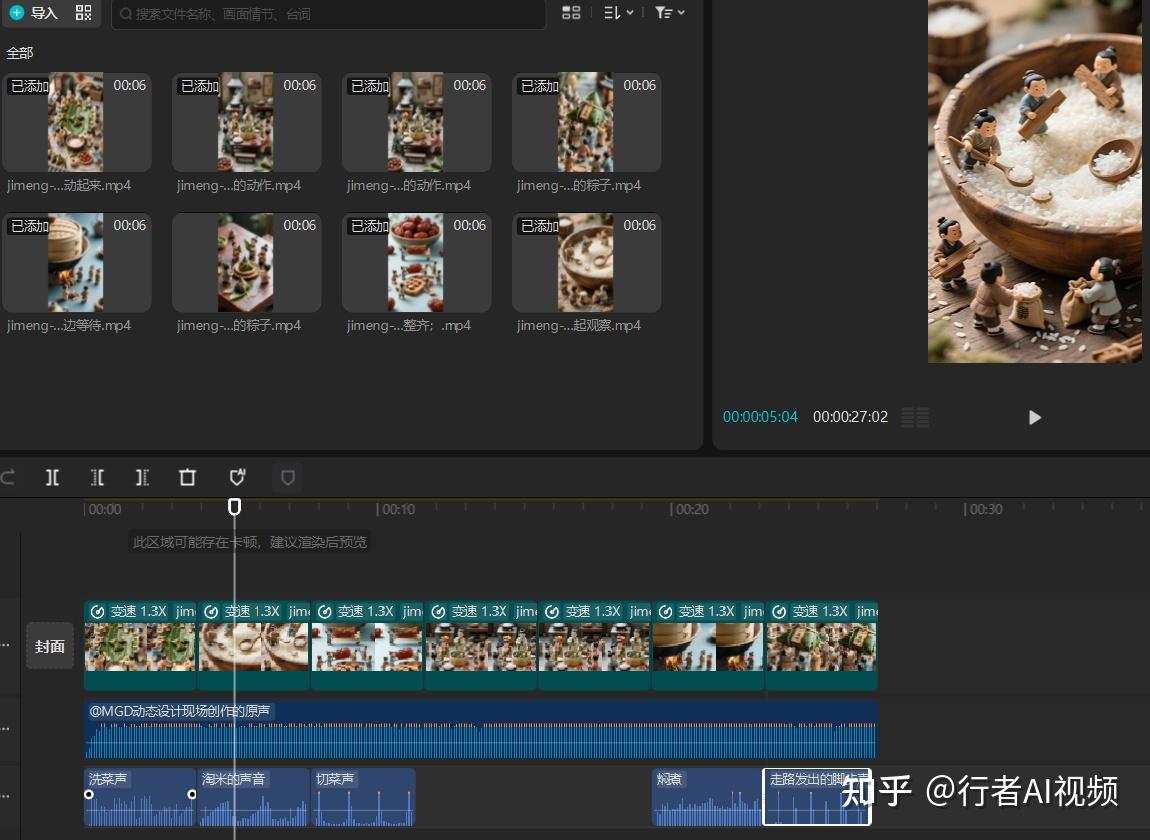 最后一步就是把生成的视频片段导入到剪映中,调整好分镜顺序。