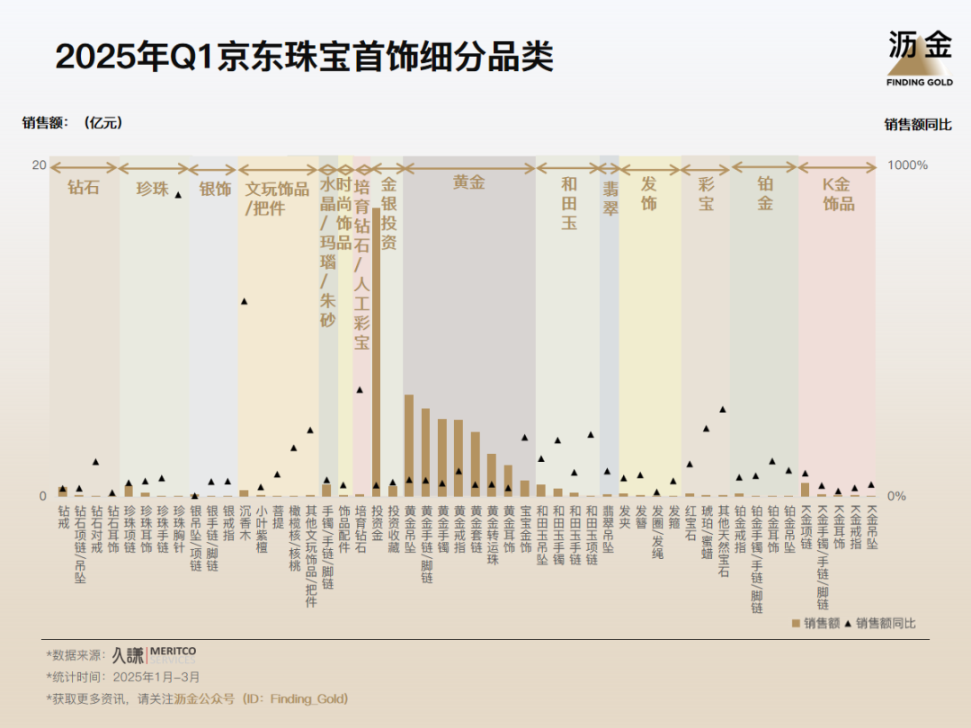 珠宝首饰中,投资金与小克重黄金双线增长,分别对应了投资保值和节庆情绪价值的双重需求。
