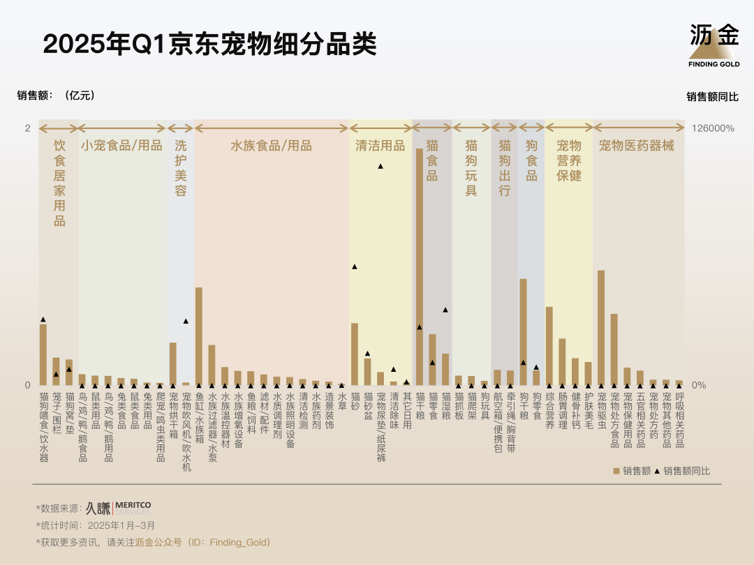 鱼缸/水族箱品类销售额增长190%、均价提升22%,高端化趋势明显;鸟/鸡/鸭/鹅用品增长74%、爬宠/鸣虫类用品增长26%等,揭示出非猫狗宠物消费潜力。