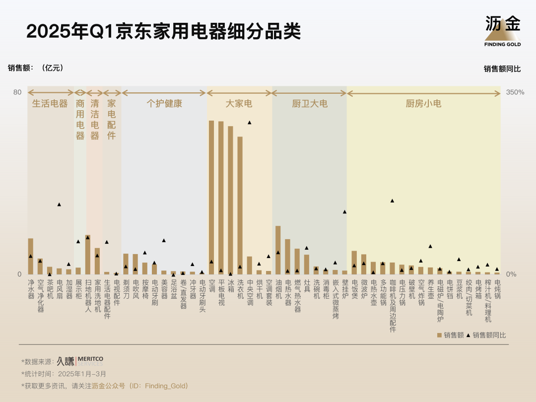 为了探究这些问题,沥金联合久谦,针对2025年京东8大品类赛道的Q1销售数据进行复盘,尝试为行业勾勒出一幅新年的增长图景。